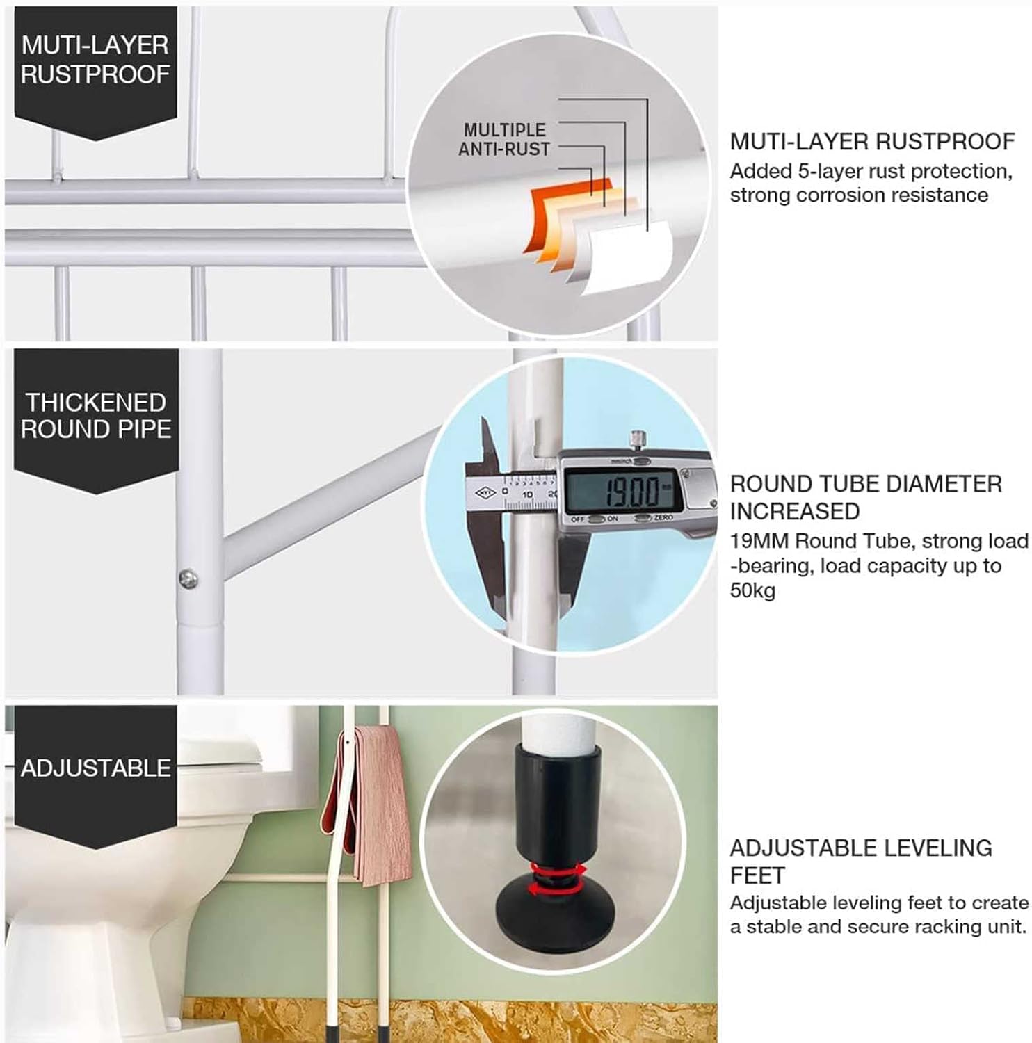 Maximize your bathroom space with our high-quality over-the-toilet storage shelves! Made from durable iron tube, these shelves are perfect for the humid bathroom environment. Non-skid feet prevent floor damage and ensure a secure fit. With three spacious tiers, you'll have plenty of space to store your everyday bathroom ls, saving you the hassle of transporting items to other rooms. Our freestanding unit can be placed over any suitable fixture in your home, providing maximum convenience and freeing up valuable storage space. Plus, with easy assembly and no drilling required, installation is a breeze. The shelves measure 25.6W x 13.4D x 69.7H, so be sure to check the size carefully before purchasing. As always, if you have any issues with our product, please don't hesitate to contact us for assistance.