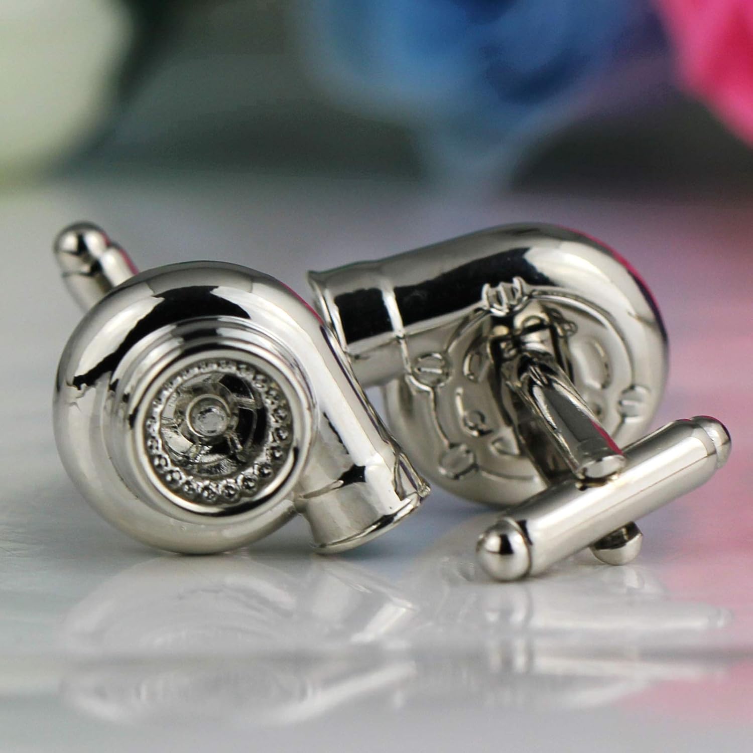 Specifications Brand: Maycom Material: Zinc Alloy Color: Gold Condition: New Package: Gift Box Package includes: 1 Pair Cufflinks Size & Weight Turbo: Turbo L*W*H 0.71*0.71*0.39 inches (1.8*1.8*1cm) Total Height: 0.98 inches (2.5cm) Net Weight: a pair 0.78 oz (22g) Using Details Be careful not to scratch the surface with sharp objects. If the surface is stained during use, you can use hand sanitizer to clean it directly. Features very creative fashion accessories A gift for car lovers full of personality highlighting individuality Cautions Due to the small size, the turbine blade is fixed and can't spin.