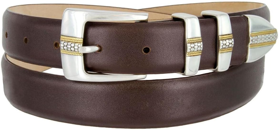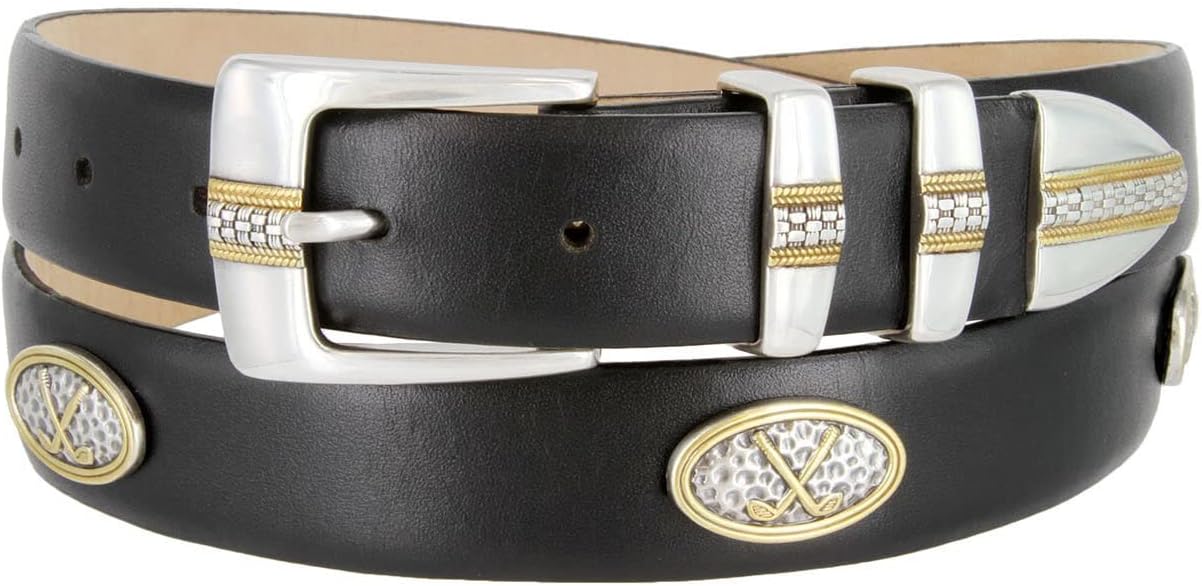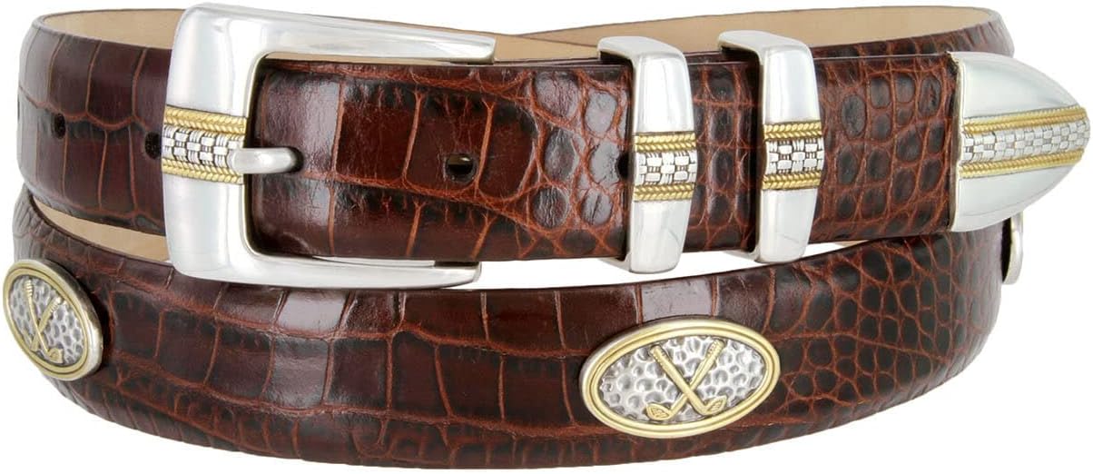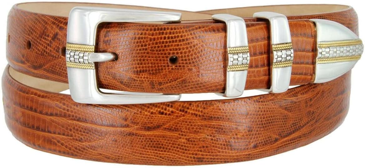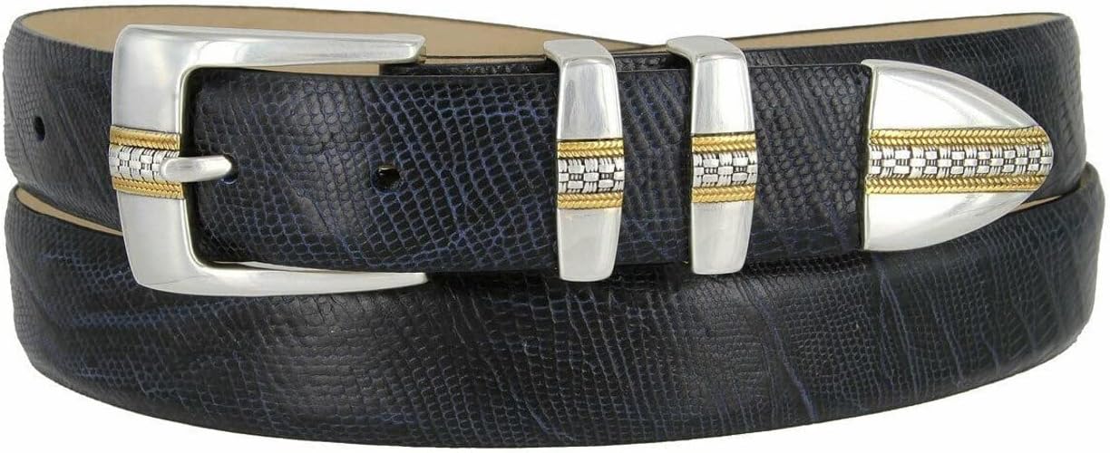 Made from High-quality Genuine Full-Grain Cowhide Leather, Hand-polished silver gold plated four-piece buckle set belt, and 5 conchos belt. 1-1/8"(30mm) wide belt with 7 belt holes for adjustments to offer maximum comfort. A great designer dress belt perfect for work, business, sport, and outdoor. Detailed of Alligator, Lizard embossing, or smooth leather belt. ★★★ How to measure your Belt size ★★★: The best way is to measure around where you wear the belt and add 2 inches to the measurement. Our belts are measured from the fold where the buckle is attached to the middle hole. If you want to get the best size we recommend measuring a belt that works for you from the fold to the hole where you wear the belt.