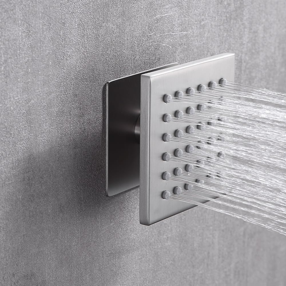 Technical Details: Brand Name: Cascada Showers Model Number: CS0120 Item Weight : 1.6 pounds per piece Product Dimensions : 4x4x 2 7/8 inches Size : 5 x 5 inch (Trim) 3 1/2 x 3 1/2 Spray Color Finish : Polished Chrome; Brushed Nickel; Matt Black; Polished Gold Material: Brass Shape : Square Installation Method : Wall Mounted Item Package Quantity : 1 Number Of Pieces : 1 Water Consumption : 1.65 GPM Batteries Included? No Batteries Required? No
